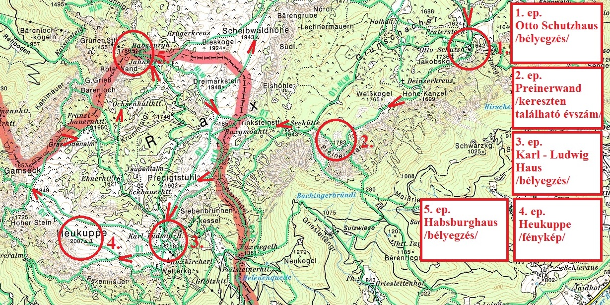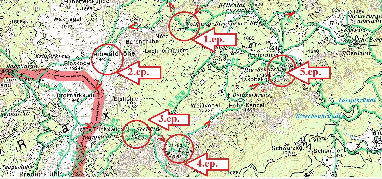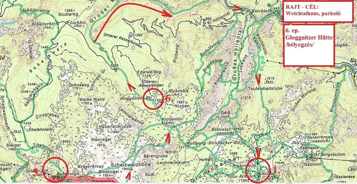 Weichtal Haus  Wachthüttelkelamm  Otto Haus  Preiner-Wand  Neue Seehütte  Karl Ludwig Haus  Heukuppe  Zahmes Gamseck  Baren Graben  Habsburg Haus  Scheibwaldhöhe  Gloggnitzerhütte  Grosser Kesselgraben  Weischtal Haus