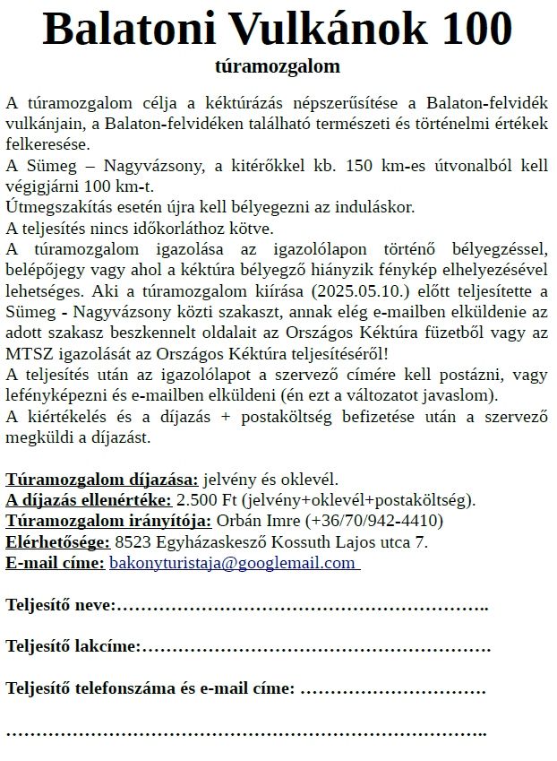 Balatoni Vulkánok 100 túramozgalom