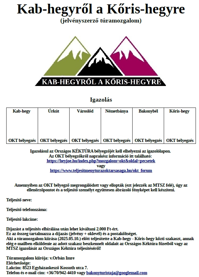 Bakony Teljesítménytúra Plakett 2026