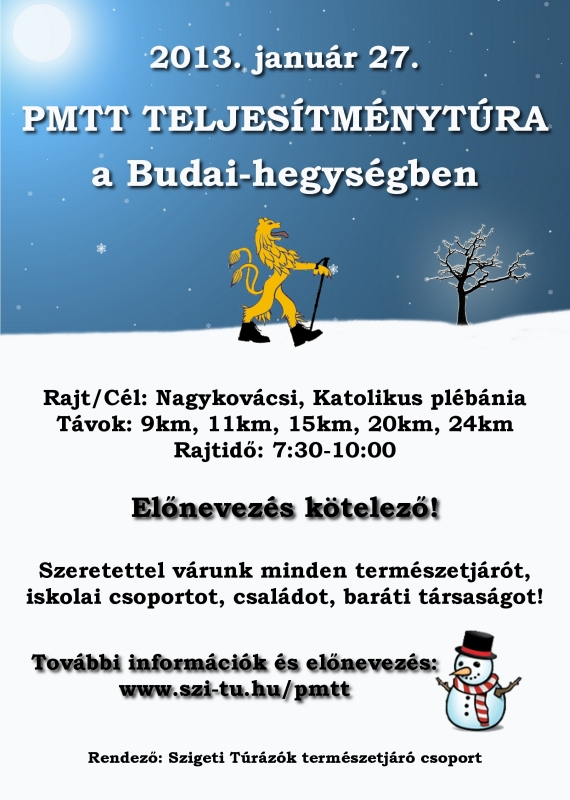 A teljesítésért járó díjazások átvehetők 2013. január 27-én a PMTT a Budai-hegységben teljesítménytúrán.
