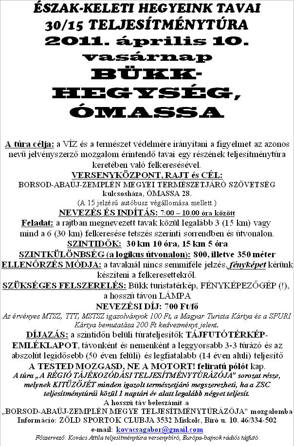B-A-Z Megyei Természetjáró Szöv. Kulcsosháza, Ómassa 28. 7:00-10:00 óra
