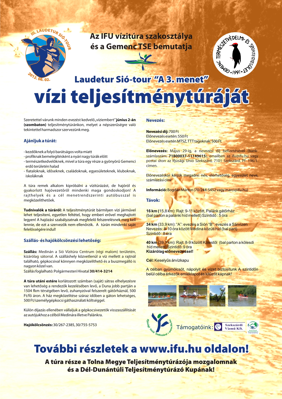 Laudetur Sió-tour 40 km/34 km /16 km vízitúra (Új!)